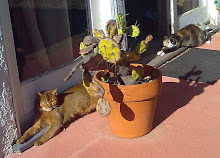 On the Amber-side, she does not talk to us, she never has. I always figured it was half that she was an Abysinian (they are very quiet cats) and half she didn't want Malarky to find her, so she kept quiet. She uses mind control, preferring to stare at us, transmitting her desires telepathically. Today, I have had to revise my thoughts. Today I learned she doesn't want to talk to us...